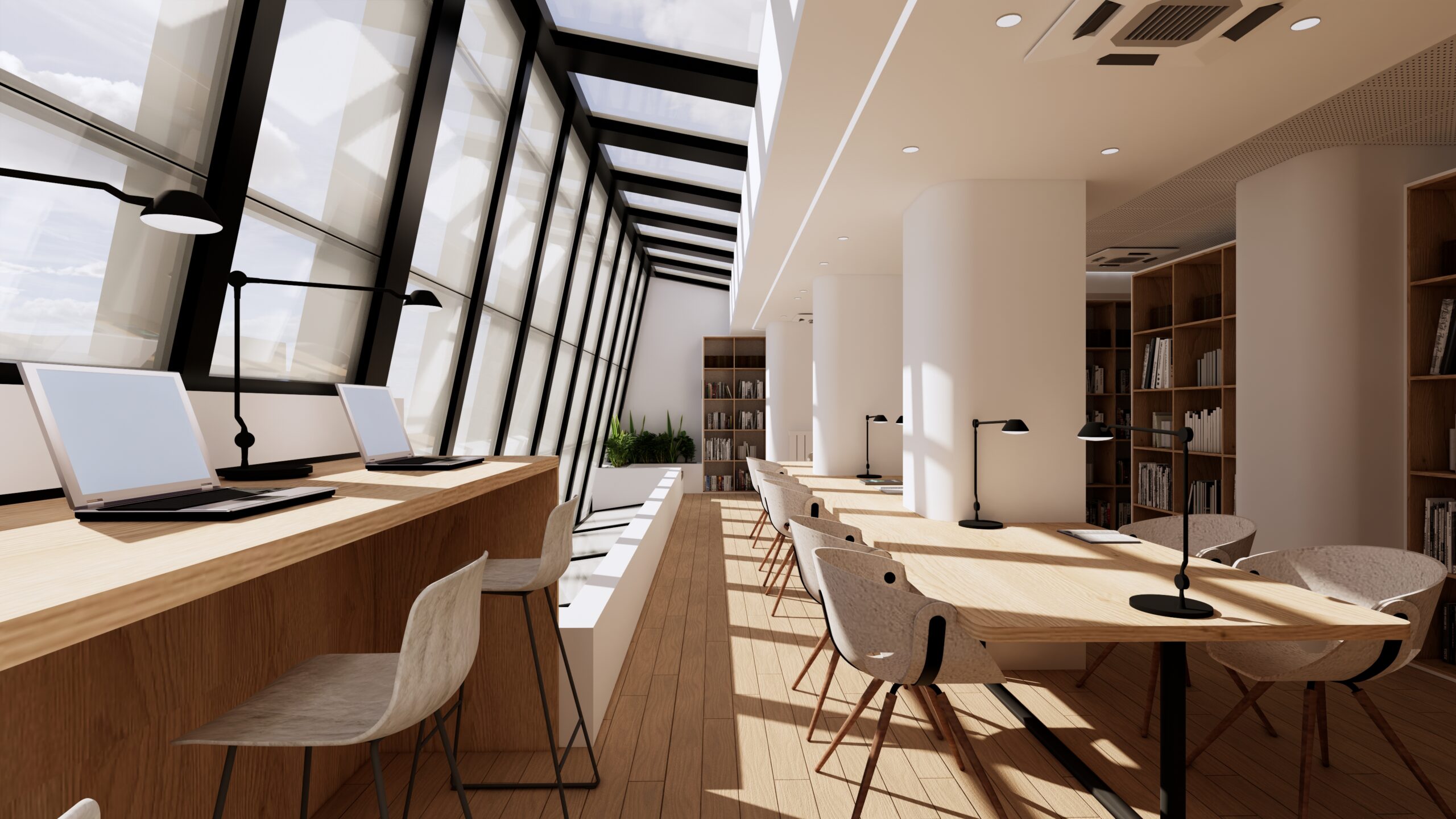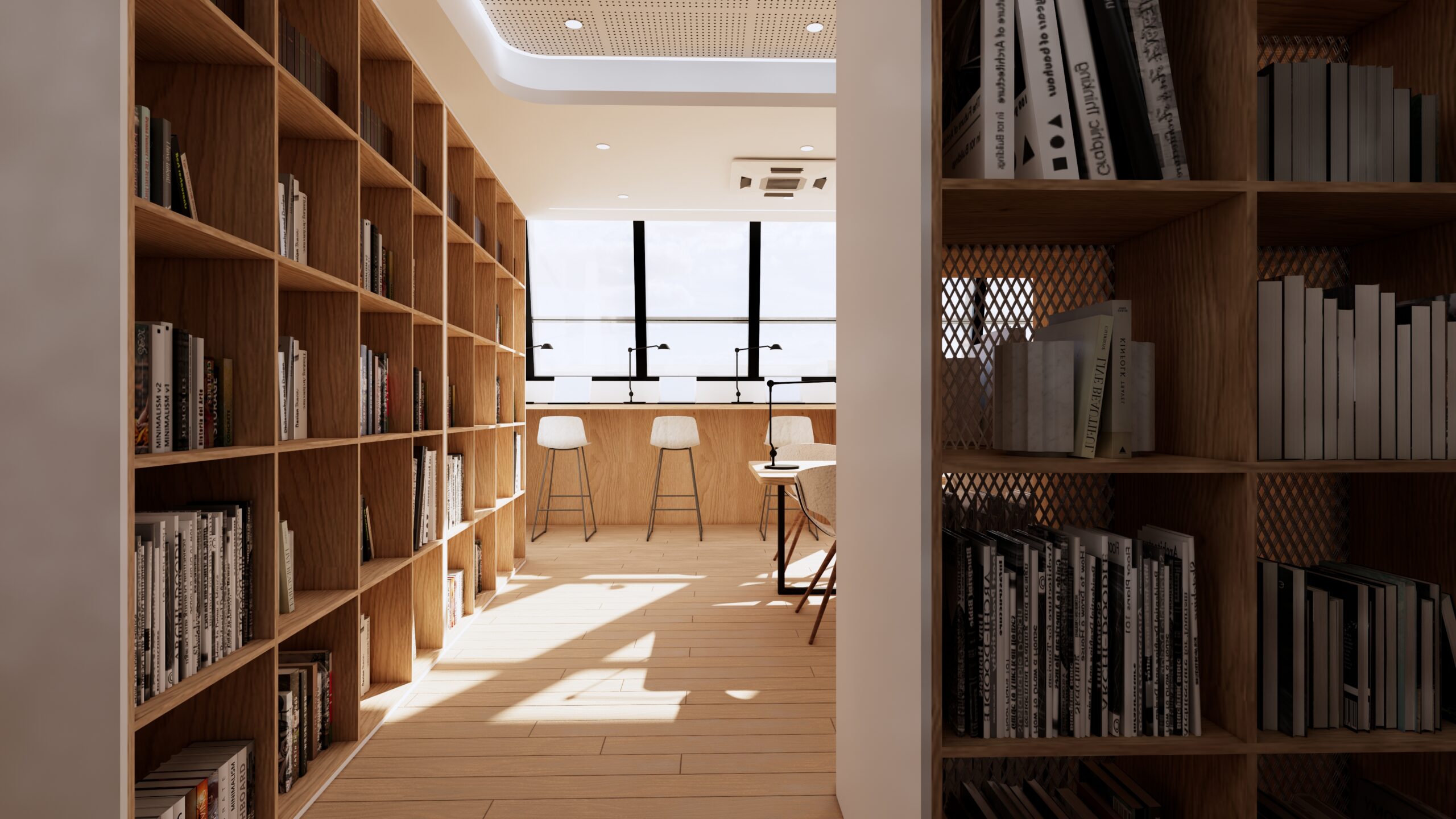 Στον πέμπτο όροφο βρίσκονται οι υποστηρικτικοί γραφειακοί χώροι του κολλεγίου, ενώ στον έκτο όροφο τοποθετείται η βιβλιοθήκη – αναγνωστήριο. Η βιβλιοθήκη, χάρη στη γυάλινη όψη της, προσφέρει ανεμπόδιστη θέα προς την Άνω Πόλη της Θεσσαλονίκης, δημιουργώντας έναν φωτεινό και ήρεμο χώρο μελέτης.