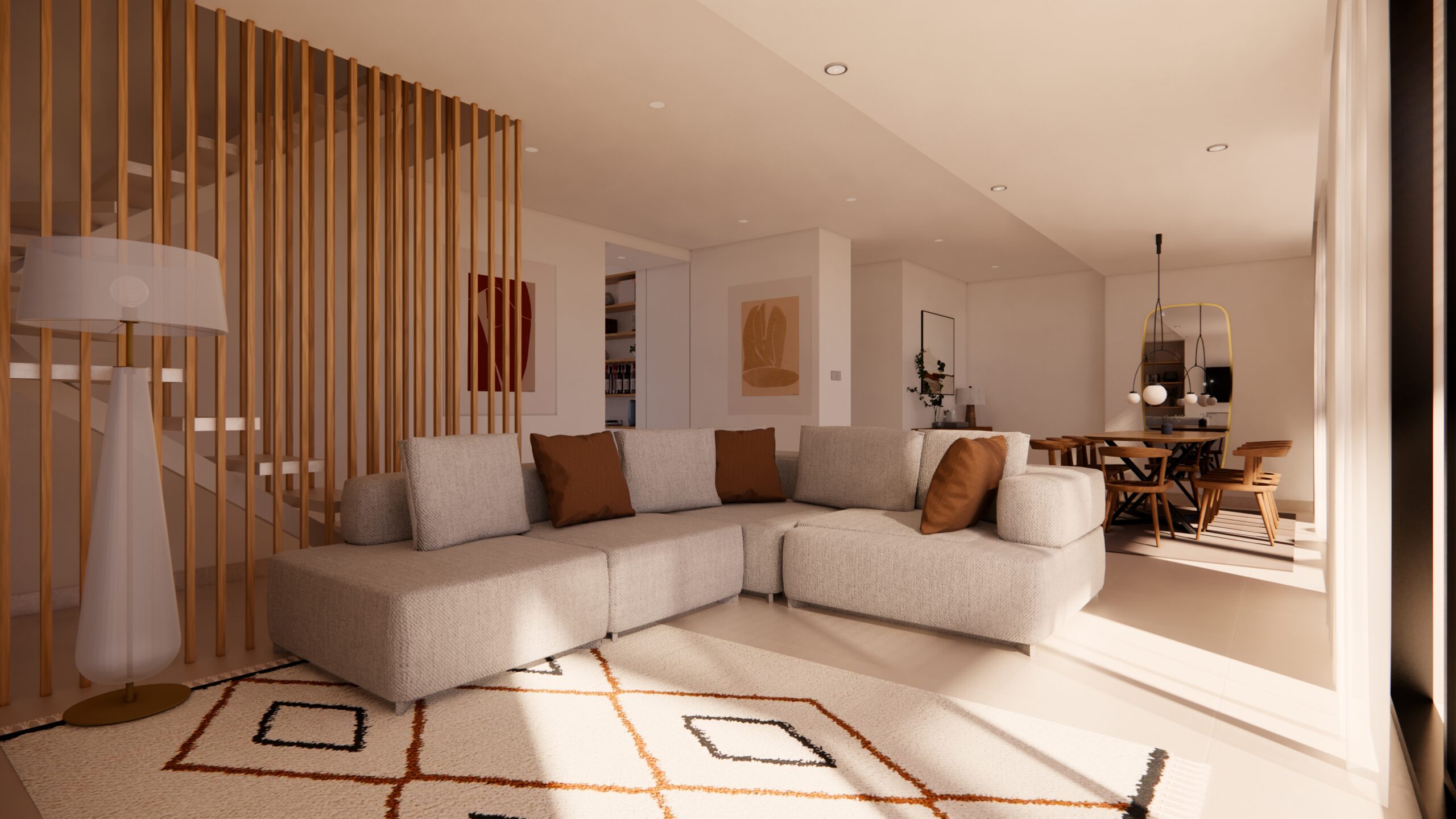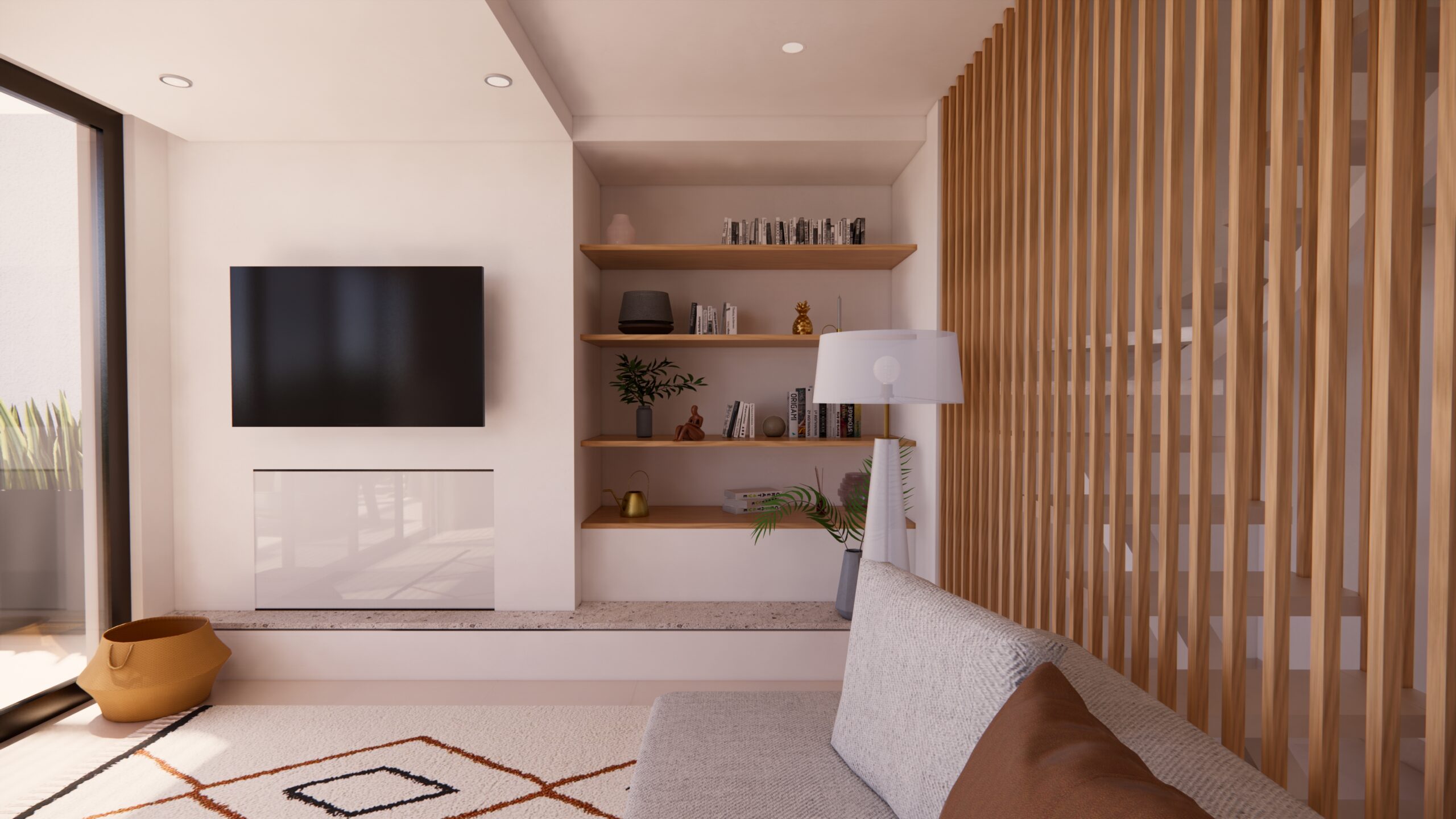Η πολυκατοικία αφορά υφιστάμενη κατασκευή, η οποία είχε παραμείνει στο στάδιο του φέροντος οργανισμού. Η μελέτη επικεντρώθηκε στη διαμόρφωση των τυπικών οροφοδιαμερισμάτων (90 τ.μ.) και στον σχεδιασμό της μεζονέτας (150 τ.μ.) που αναπτύσσεται στον πέμπτο και έκτο όροφο, με στόχο την προσαρμογή του κτιρίου στις ανάγκες της σύγχρονης αστικής κατοίκησης.