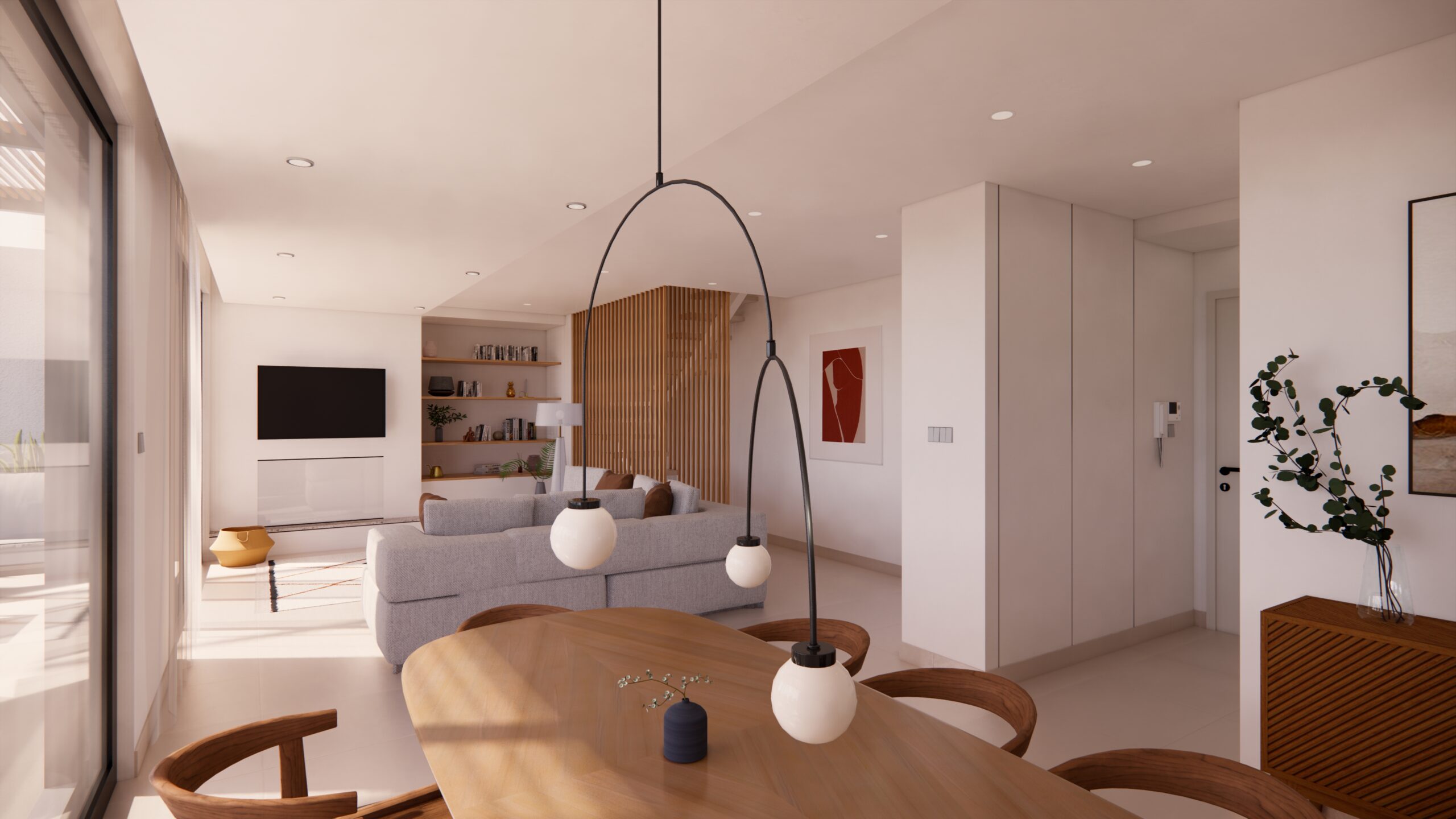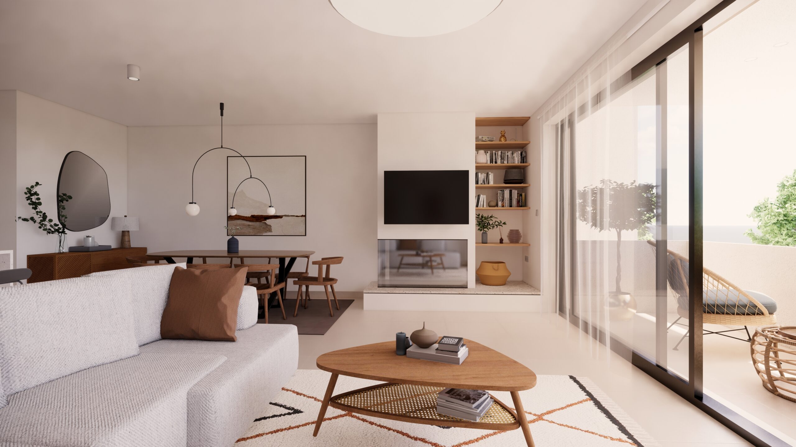 Τα διαμερίσματα εξοπλίζονται με σύγχρονα υλικά και κατασκευές: κουφώματα αλουμινίου υψηλής ενεργειακής απόδοσης, πλακάκια μοντέρνας αισθητικής και open plan κουζίνες με καθαρές γραμμές και εργονομικό σχεδιασμό. Η θέρμανση επιτυγχάνεται μέσω λέβητα φυσικού αερίου, ενώ κάθε διαμέρισμα διαθέτει ενεργειακό τζάκι, προσφέροντας τόσο λειτουργικότητα όσο και αίσθηση οικειότητας.