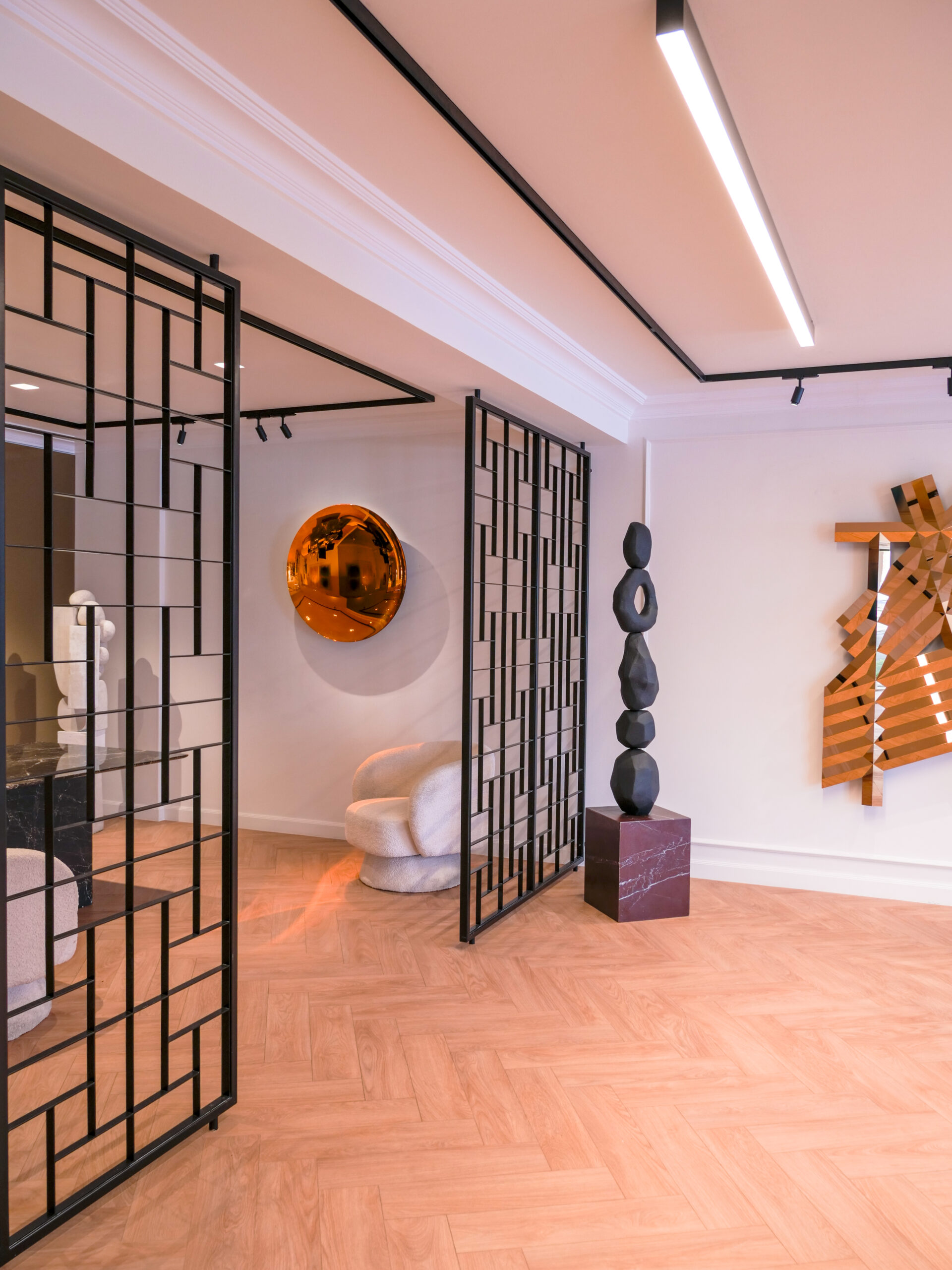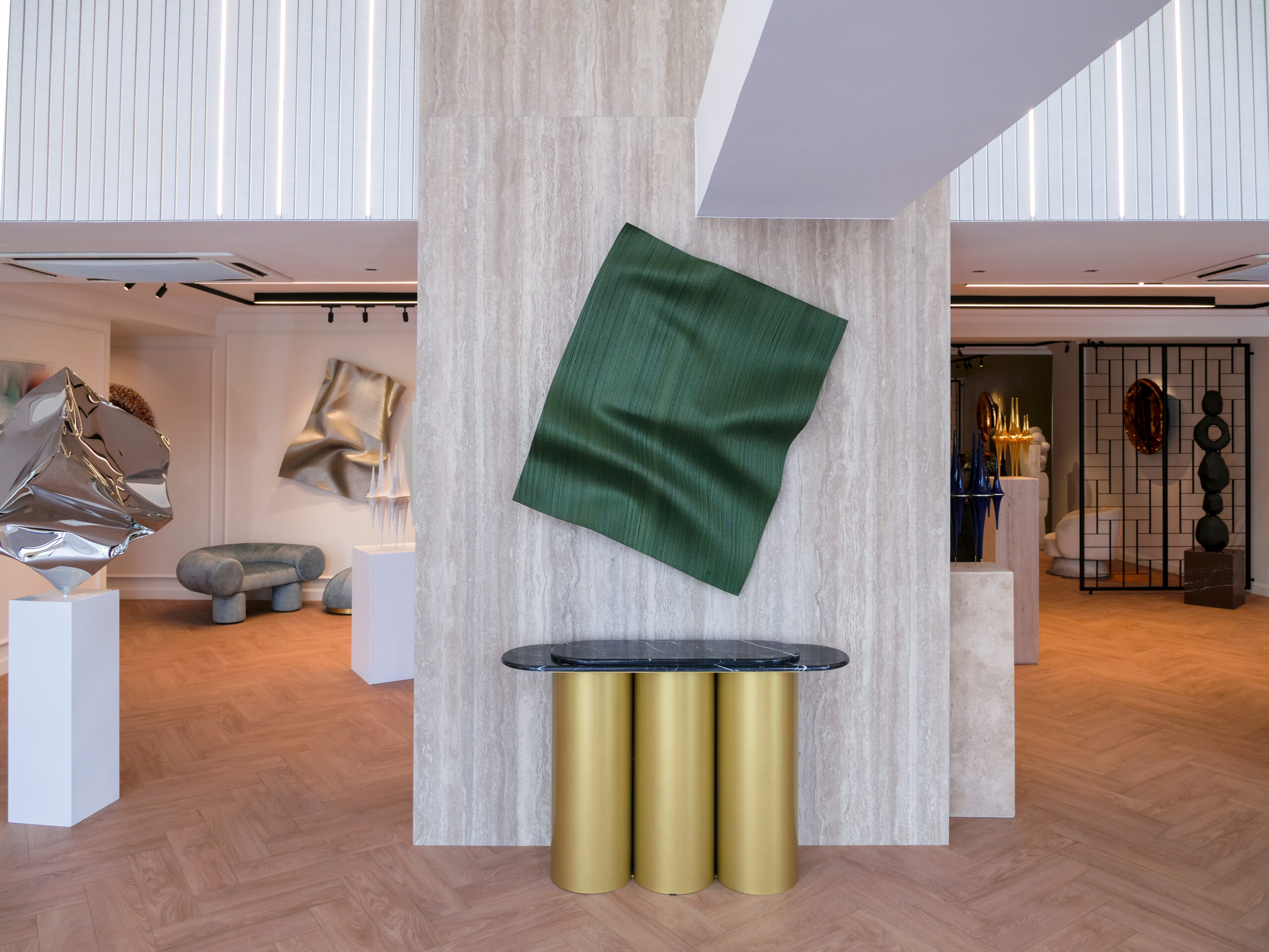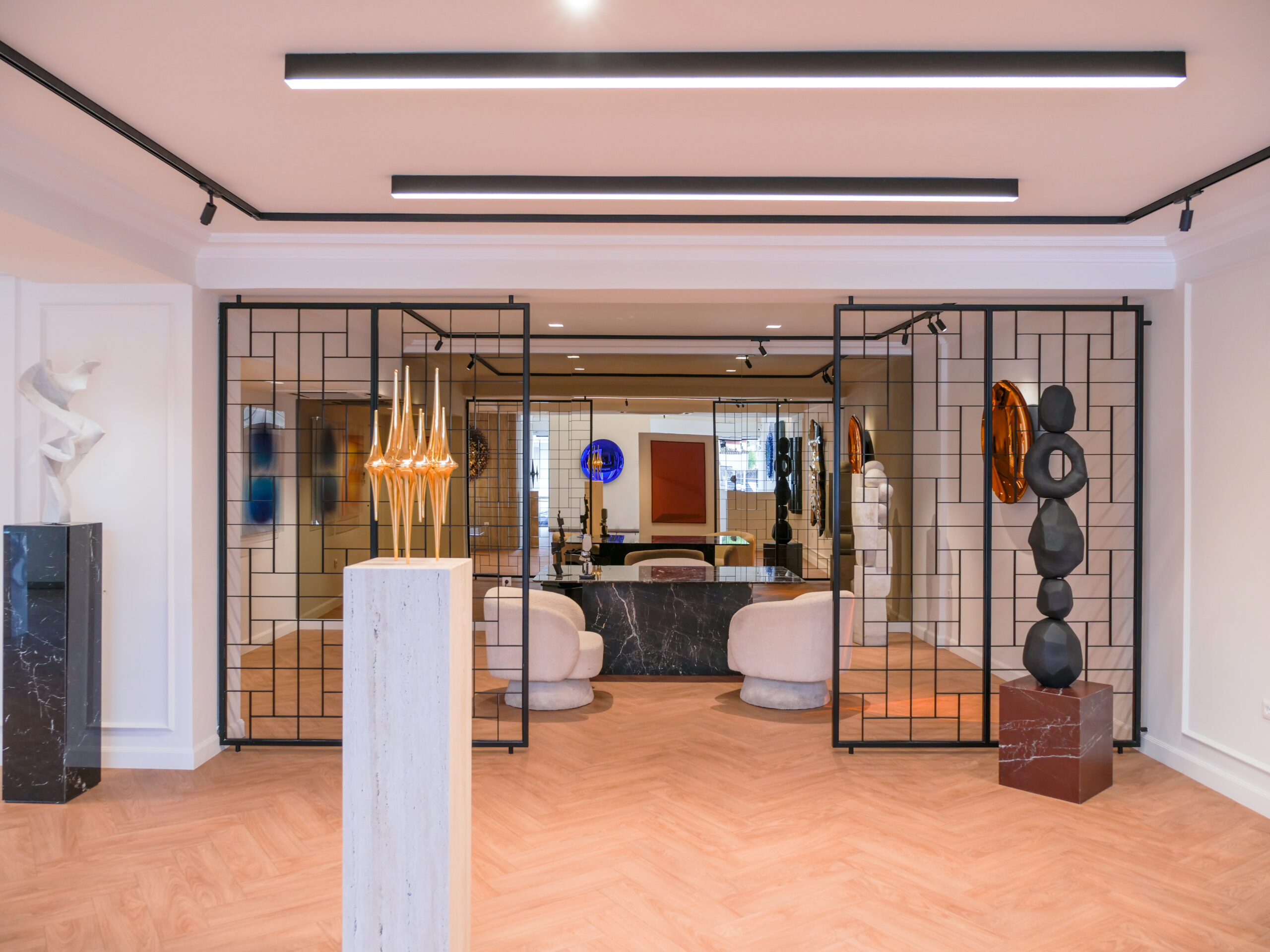 Στόχος είναι η δημιουργία ενός υψηλής αισθητικής χώρου, όπου ο επισκέπτης περιπλανιέται ανάμεσα στα έργα, ταξιδεύοντας γοητευμένος στον κόσμο των καλλιτεχνών. Έργα με ποικίλες υφές, χρώματα, διαστάσεις και συνδέσεις γίνονται το αντικείμενο έκθεσης σε ένα λιτό, ήσυχο και ταυτόχρονα διαχρονικό φόντο. Κυρίαρχες είναι οι αντανακλάσεις, ενώ η τοποθέτηση των έργων και η κίνηση του επισκέπτη ανάμεσα τους είναι τέτοια που ενισχύει και δημιουργεί πολλαπλές ενδιαφέρουσες οπτικές φυγές και εκπλήξεις.