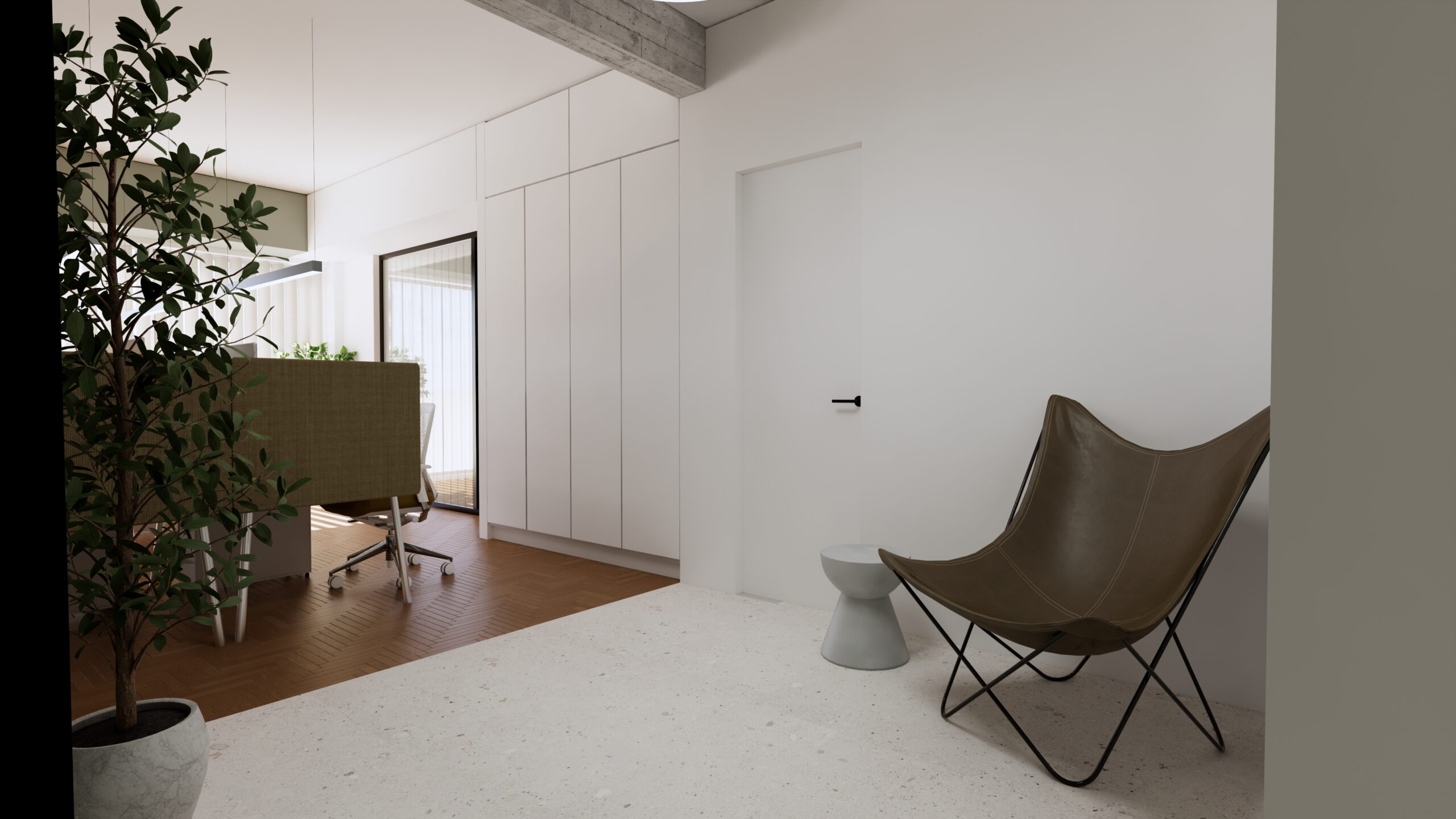 Η πρόταση αφορά τη μετατροπή ενός υφιστάμενου διαμερίσματος 120 τ.μ. στο κέντρο της Αθήνας σε σύγχρονους open plan γραφειακούς χώρους.